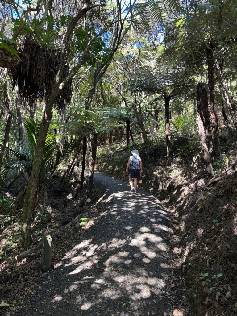 Eventually we had to leave the beach and brave the rest of the drive to our hotel in Coromandel town. We arrived safely, and after checking in and unpacking, we went for a walk in a nearby nature reserve with native trees and birds.