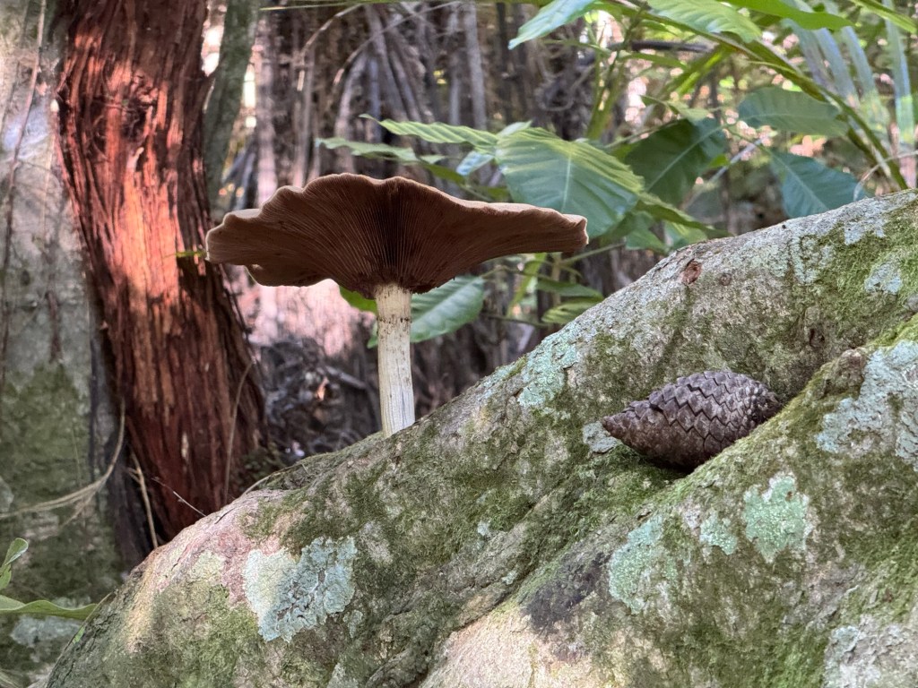Later on the walk we spotted this mushroom near a pine cone and thought it made an interesting picture.