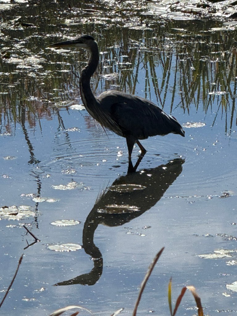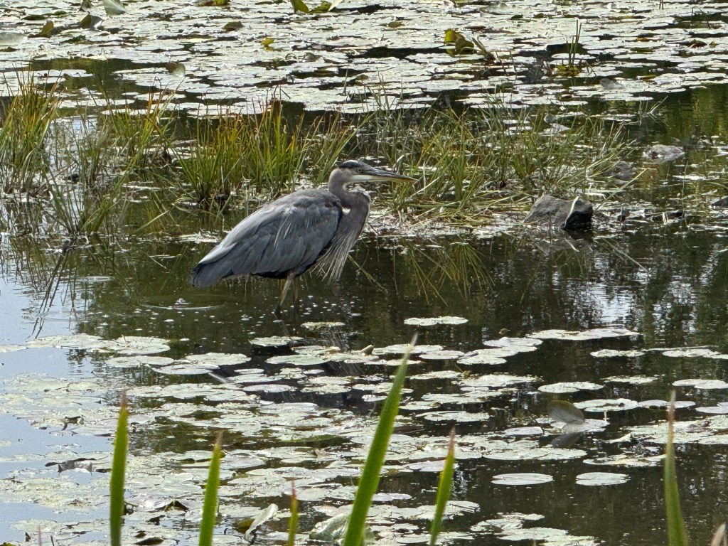 The past few weeks haven’t been quite as hot, so we’ve been able to walk in the afternoon. We’re in the suburbs, but there are still a few opportunities to see birds, like these herons.