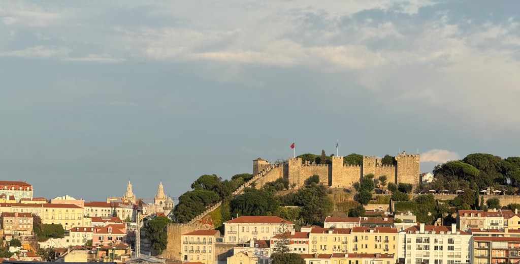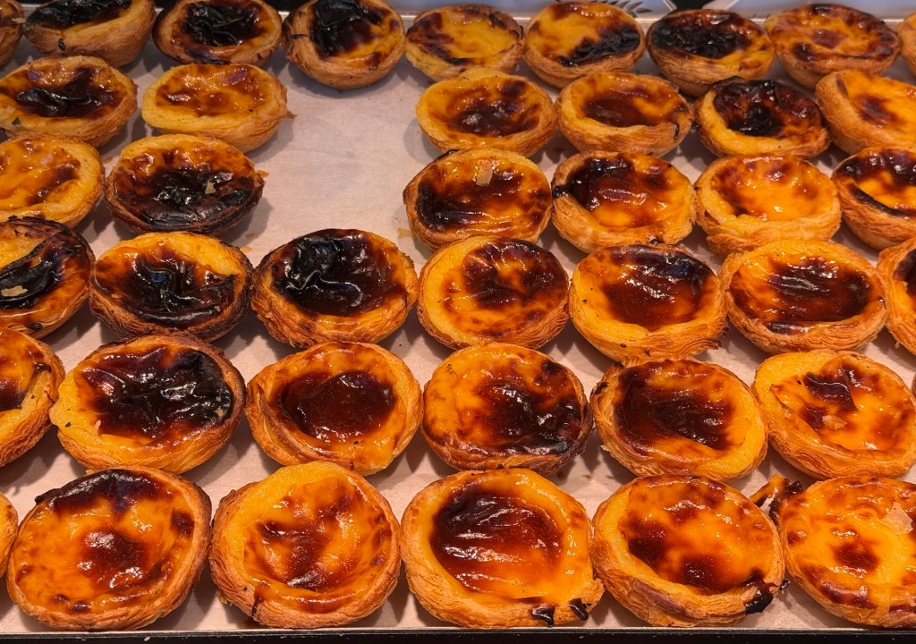It had been a while since breakfast on the plane, and we were getting a bit peckish … in the danger zone for “hangry”. We spotted a shop with the local pastry, pastel de nata, so we bought a couple and headed across the street to the park to eat them and enjoy the view.