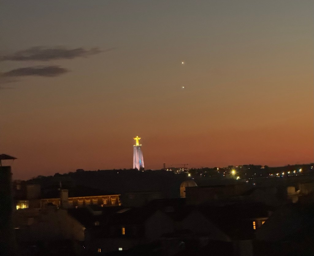 Our room is on the top floor of the building – only the 5th floor, but it still offers some views. Just after sunset, I saw this view from our window.
