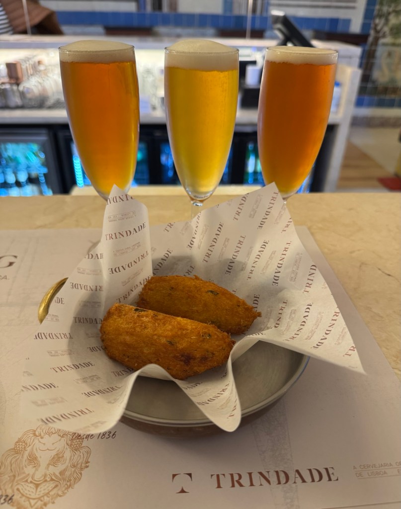 When we got back to our hotel it was beer o’clock, and I was anxious to check out the beer tasting menu I mentioned yesterday. The plan was to sit outside, but I was informed the beer tasting menu was only available when sitting at the bar. Serendipity strikes again. While enjoying our drinks, we were treated to a show watching the bartender prepare large seafood platters – not something that most bartenders do, but fascinating to watch. And the room was richly decorated with eighteenth century painted tiles by local artists. The building has been declared a Lisbon heritage site, and it clearly deserves the designation.