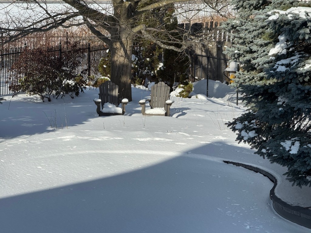 Last summer we added a “secret garden” in our yard. It was a wonderful oasis in the heat of the summer. Right now, it isn’t much of a garden nor an oasis.