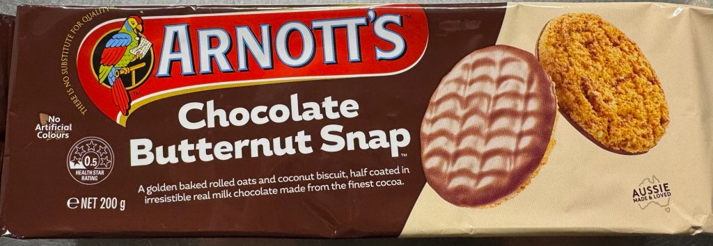 One of the things we enjoy when we travel, believe it or not, is visiting grocery stores to look for interesting new flavors. After our walk, we were craving something sweet … perhaps a chocolate coated biscuit, and I spotted these.