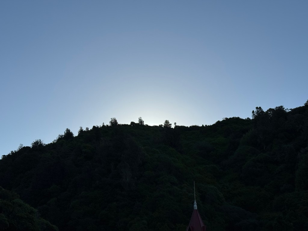 Zealandia is in a valley, with very steep hills on either side. So, even though the sun had set for us, down at the bottom of the valley, the eastern side of the valley was bathed in golden light. Special!
