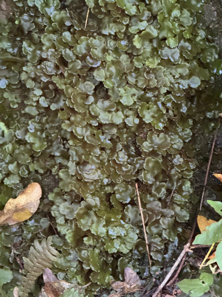 In the damp areas there were mats of liverwort, a very primitive plant, from the time when plants were moving from the sea to the land.