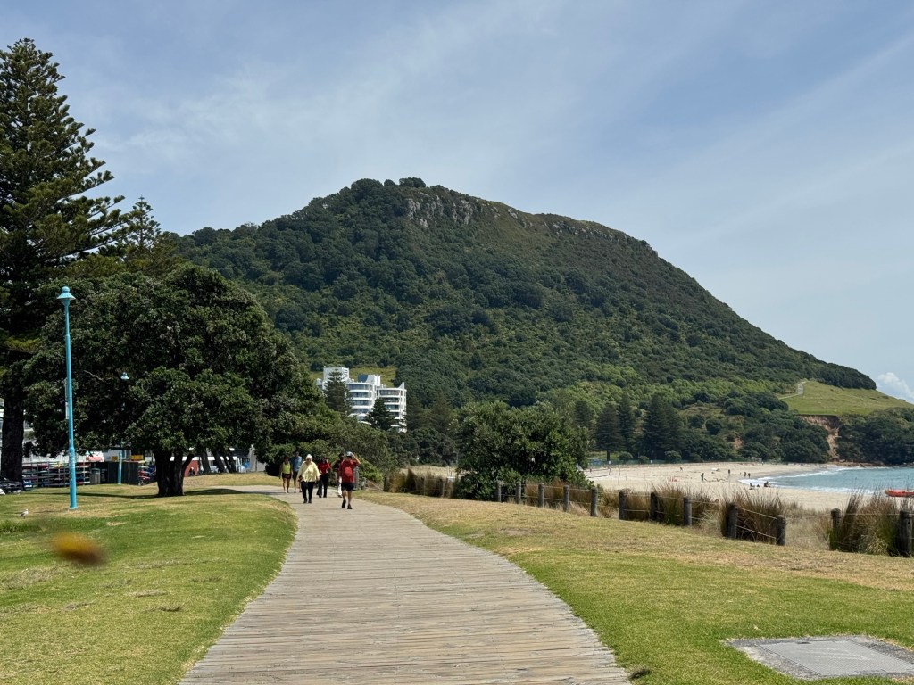 Our drive to Waihi Beach took us past Mount Maunganui. We stayed in The Mount on both of our previous trips to New Zealand, but this year we decided to give it a pass. Too many interesting places to see in New Zealand. But it was a short drive today and we had time to kill before we could check into our hotel, so we decided to stop in Mount Maunganui for lunch. We were early so we took a stroll along the boardwalk, with The Mount in the background.