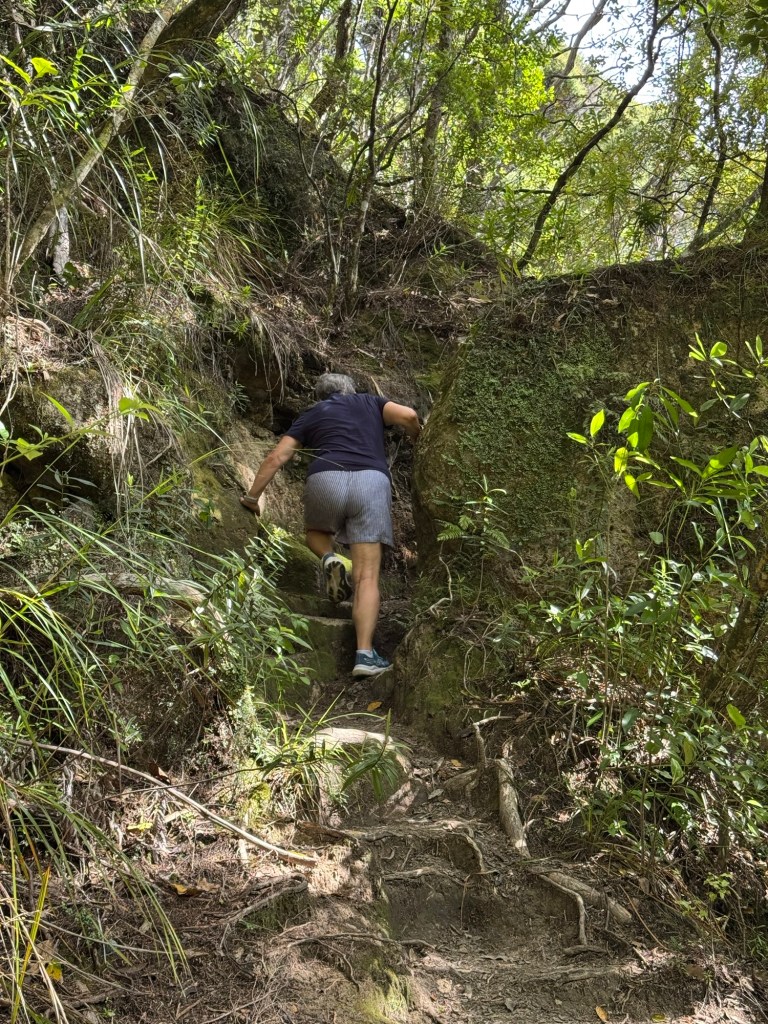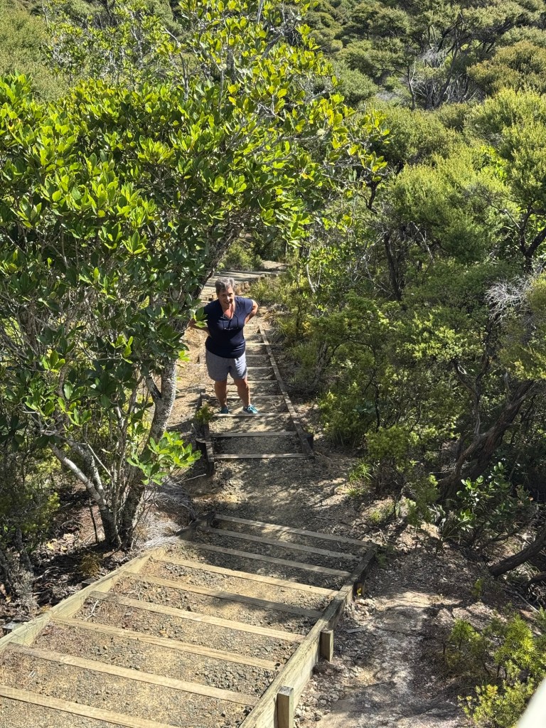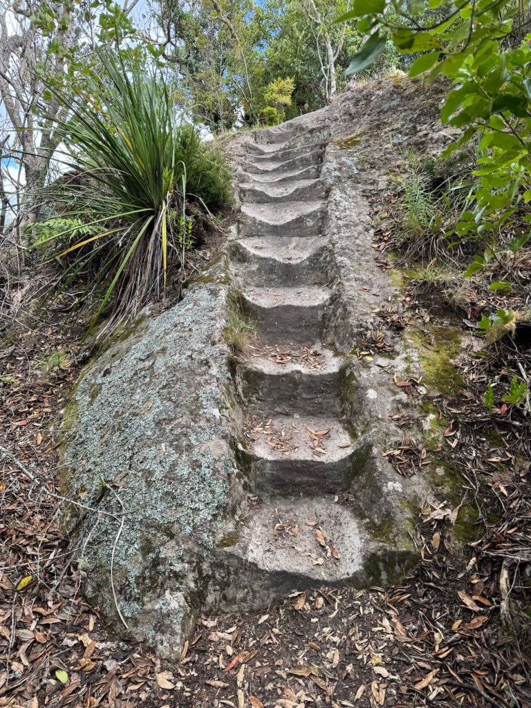 AllTrails showed a short hike on the other side, that provided views over Whitianga, so we figured, why not? Near the beginning of the trail, a panel explained about Maori Pa – essentially a fortified area. There were the remains of one just off the trail. It looked interesting, so we decided to check it out. A Pa is typically built on high ground that is easy to defend and the path up the hill certainly showed that to be the case.