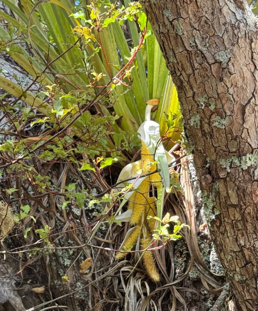 The plant life was also interesting. This was a fascinating plant we spotted on a tree branch, with air roots and flowers that looked alien.