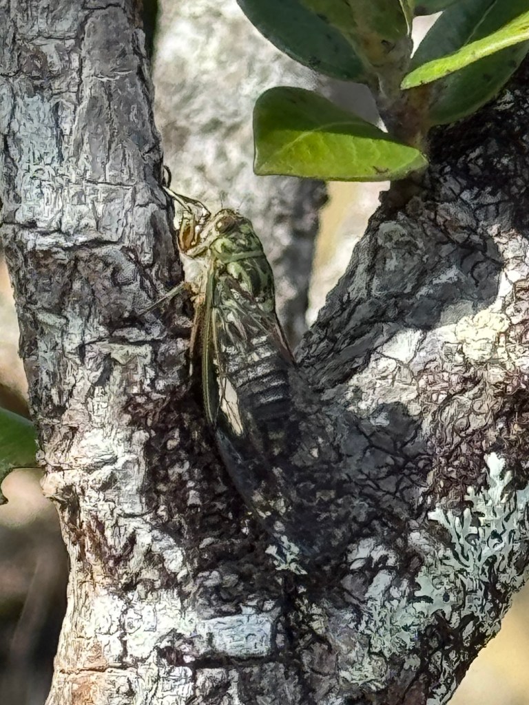 We had been hoping to see birds, but they were nowhere to be found. But eagle-eyed Jan spotted this Cicada.