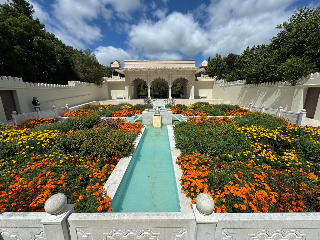We have visited many botanical gardens on our travels. It’s one of our favourite activities, especially when it’s winter at home. So we thought we knew what to expect. We were wrong! In most botanical gardens the focus is on the plants, showcasing different varieties and providing details about their origin and characteristics. Hamilton Gardens takes a different approach, almost a cultural approach, providing examples of different “gardens” over the ages. Some were purely functional (for food) while others were purely to display wealth and status. And some were a bit of both. This first picture is an example of a Mughal garden from 17th century India.