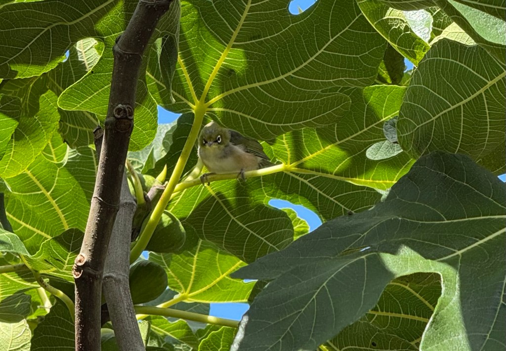We also saw a number of silvereye in the fig trees, apparently enjoying the fruit. I finally managed to get a decent picture of one of them.