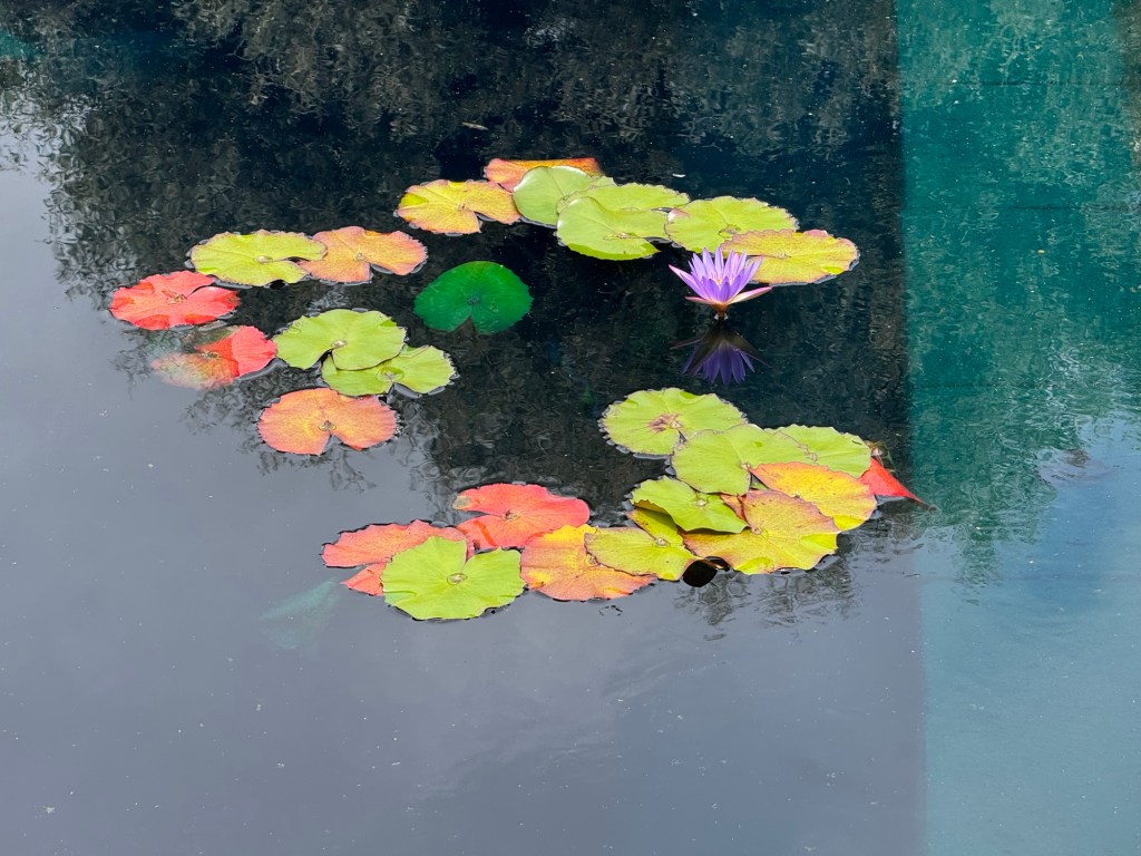 Here is a detail of the water lilies in the pond. It almost looks fake, but I assure you they are real.