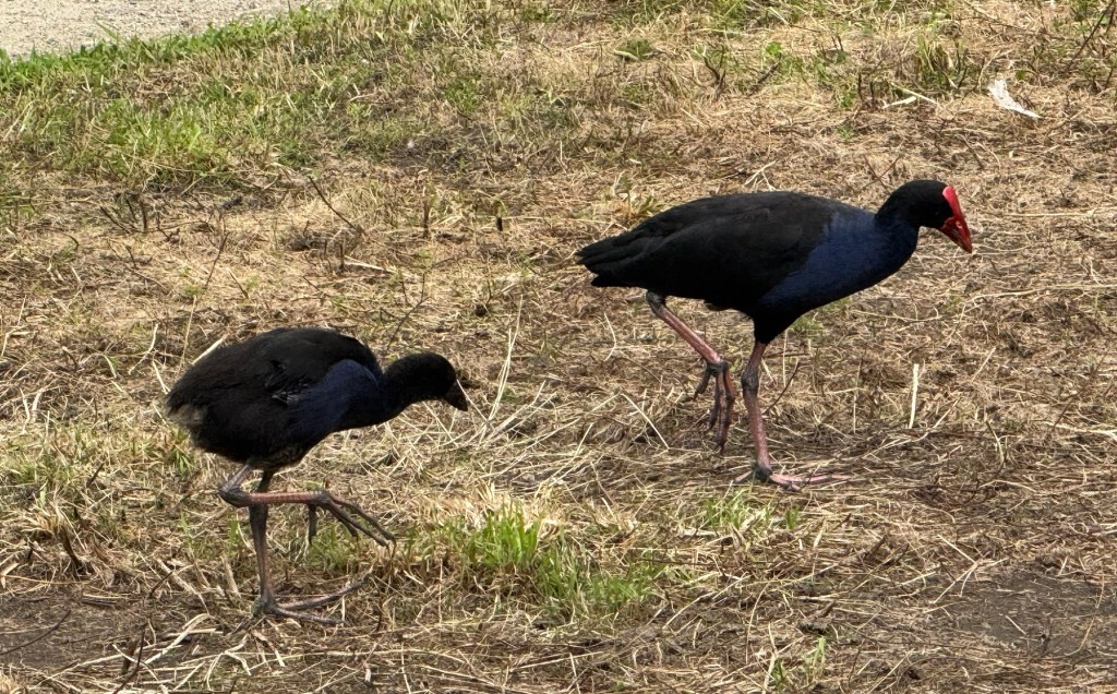 We are always on the lookout for birds in New Zealand. We have seen many pukeko along the road while we were driving in the Coromandel, but we weren’t about to stop to take a picture of them … though we briefly considered the idea. Fortunately there were some in the gardens today.