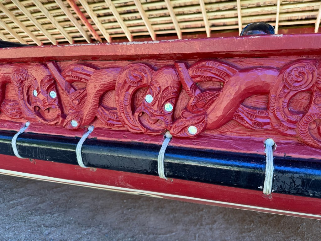The war canoe is taken out once a year on February 6th, the date the treaty was signed. It is huge, requiring at least 80 people to row it, but it is also rather fast, having been clocked at over 25 knots. It is also richly decorated.