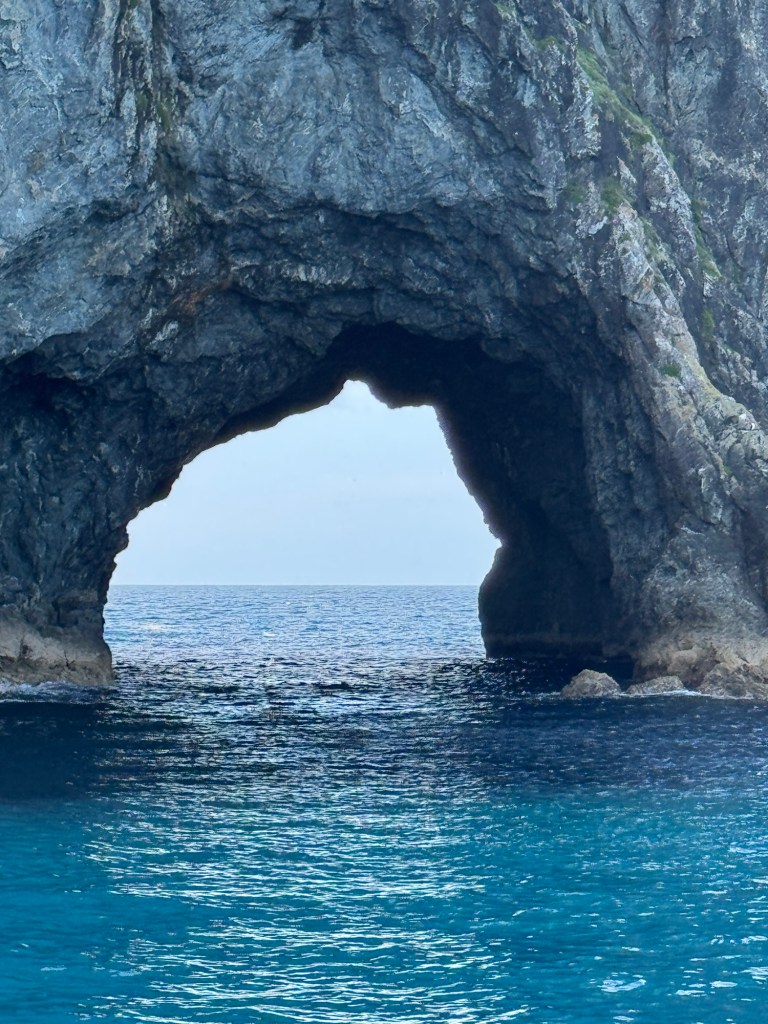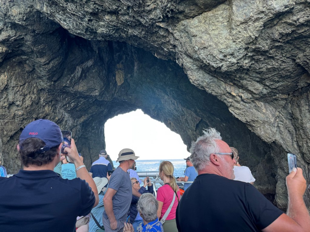 Someone asked if our boat would fit through the hole, and the skipper said “just”. If the tide, the currents and the swell were just right, we could go through the hole. Today, everything was right and we went through.