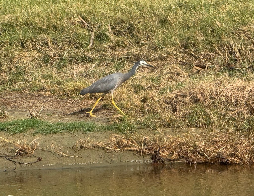 As we neared home, we spotted a white-faced heron looking for dinner.