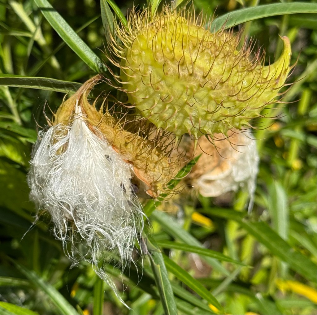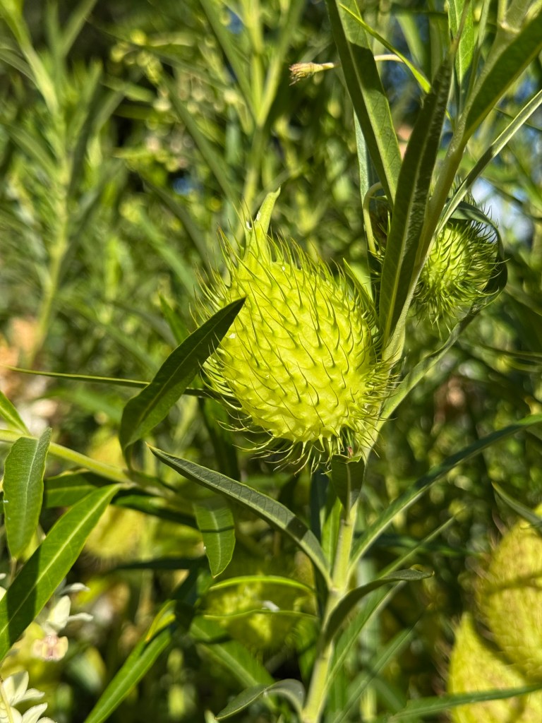 I spotted an interesting plant that we’ve seen before. I looked it up and discovered it’s a narrow-leaved cotton bush that is a host of the monarch butterfly.