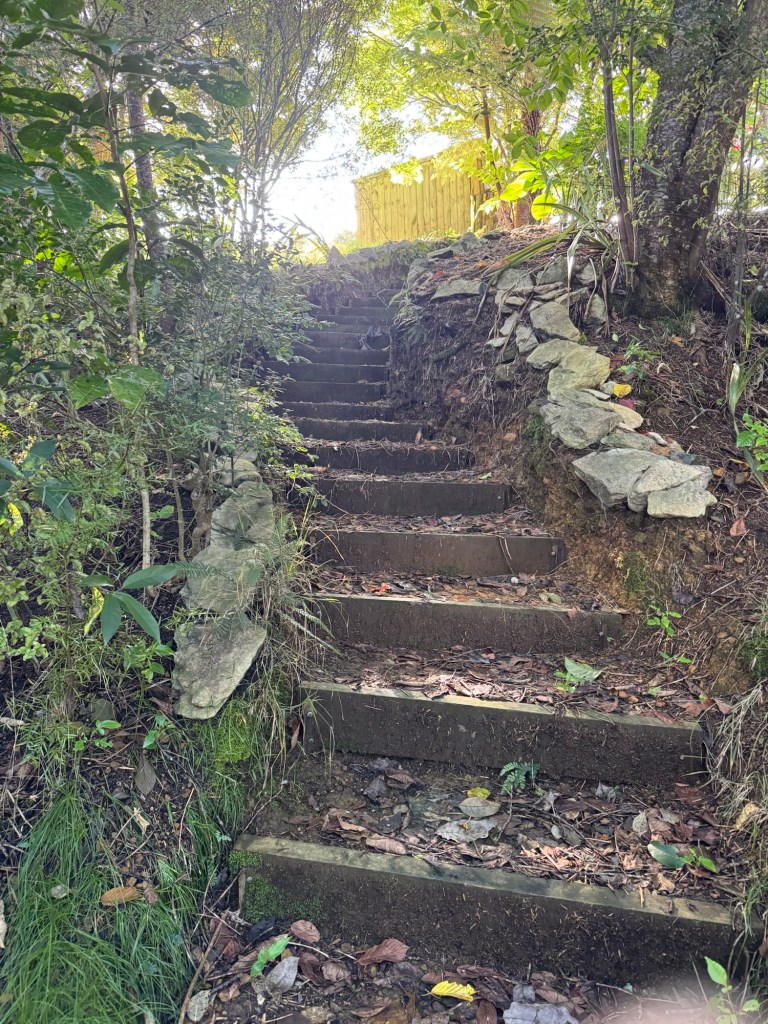 The trail was wet after last night’s heavy rain, so I turned around fairly quickly. Walking back up the stairs to the start of the trail I took this picture.