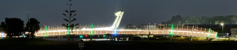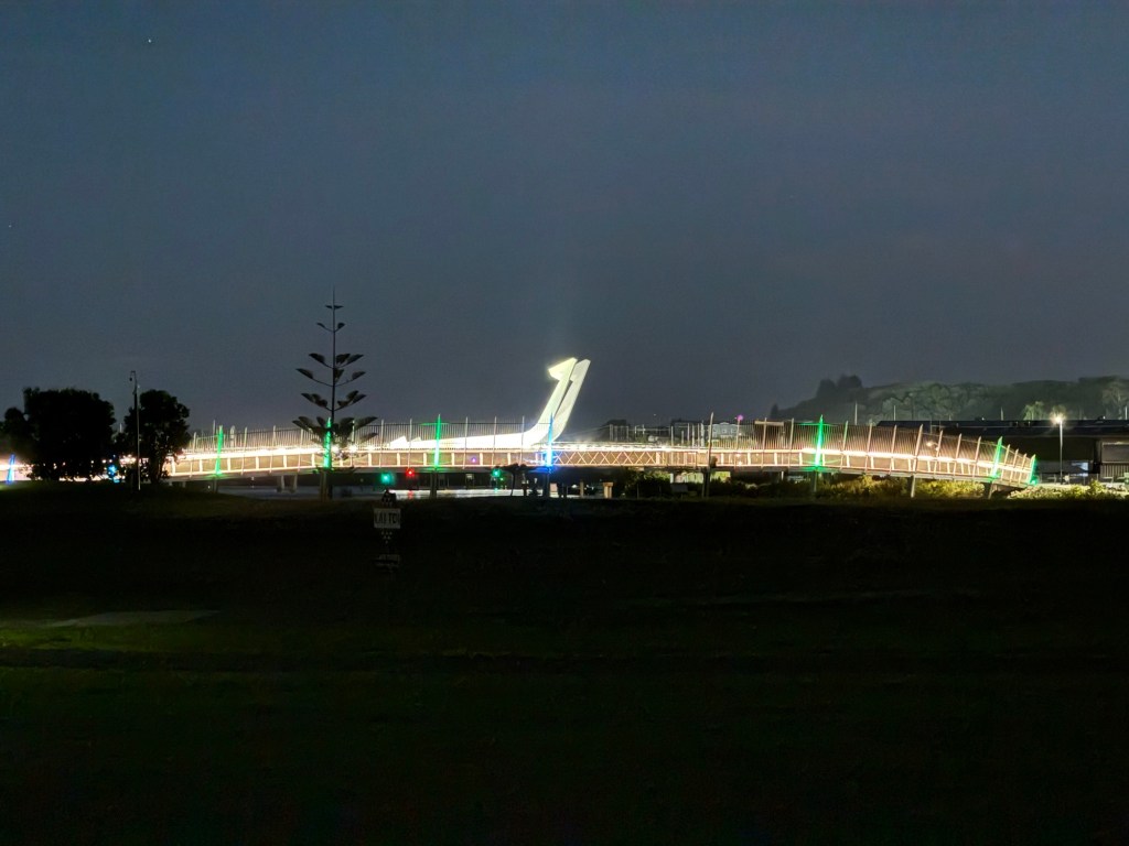 I showed a picture of the bridge in Whangarei the other day, but when it is lit up at night, it is even more impressive.