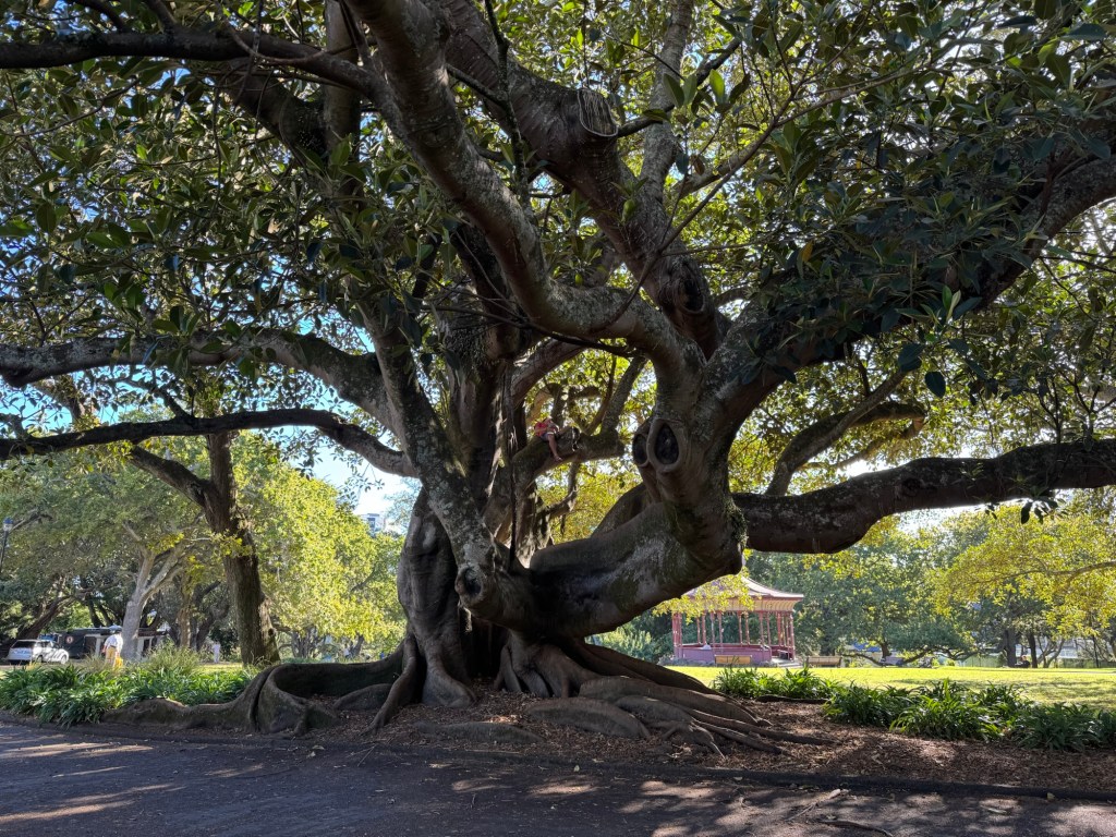 I probably showed a picture of this tree the first time we visited New Zealand three years ago, but I still think it looks cool, so I’m showing it again. If you look closely you can see someone taking a nap on a branch in the tree. Can you find them?