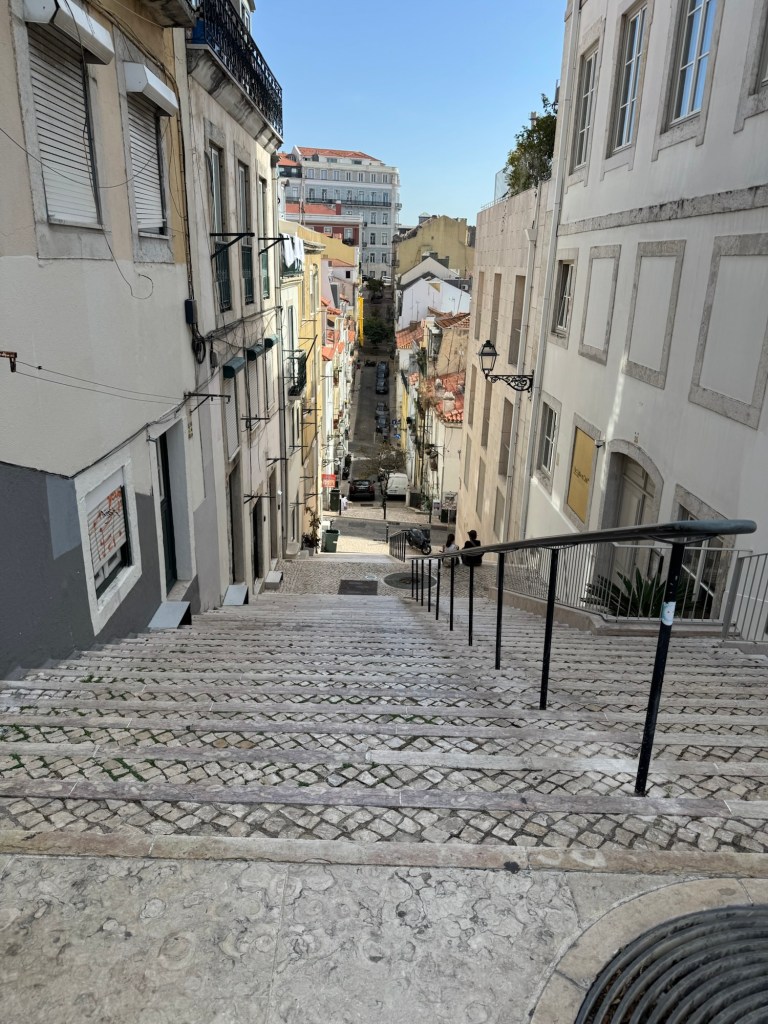What did I mean? Let’s start with how we spent our day. Mostly, we wandered the streets of the Chiado district in Lisbon enjoying views like this…