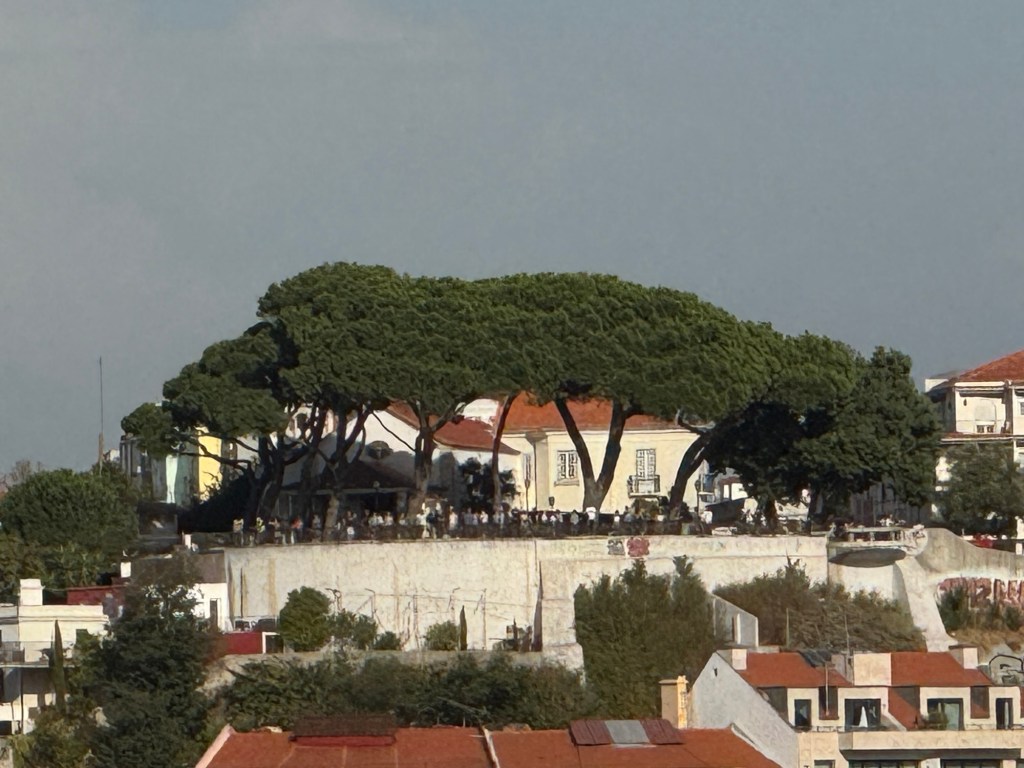 Before long we came to another small park with one of Lisbon’s many lookouts. We took a few minutes to enjoy the lovely weather and the view of Lisbon. I zoomed in to take a picture of these umbrella pines.